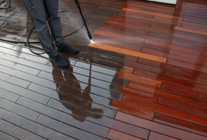 We assess the condition of your deck, including wood species, moisture levels, and prior stain use.