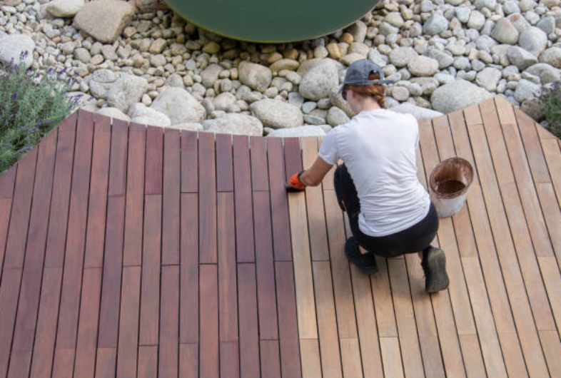 We apply stain evenly with brushes, rollers, or sprayers depending on your deck’s texture and accessibility. We work in controlled sections to avoid overlap or color inconsistencies.